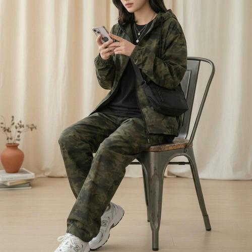 [옷자락]여성용 카모 전술 후드 루즈핏 아웃도어 집업