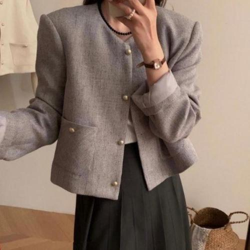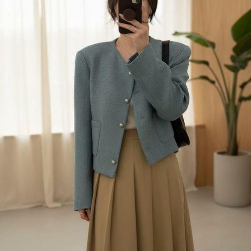 [다잇템]여성 숏길이 트위드 어깨패드 U넥 재킷