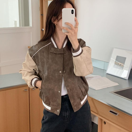 옷자락 / 여자 빈티지 가죽점퍼 버튼 배색 나그랑 가을 자켓