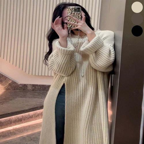 [셀럽하우스]여자 GKCU9579 루즈핏 트임 롱 니트원피스 하찌 라운드 스웨터