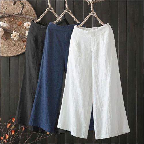 시원한 와이드 린넨 여성 여름 통바지 통넓은 나팔바지 WFKBXN4