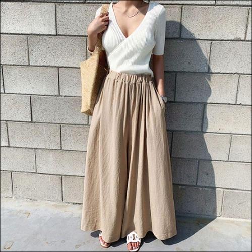 와이드 허리밴딩 치마바지 통바지 6색 린넨 시원한 팬츠 여자 WFKBX6X