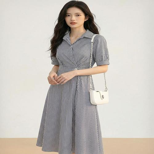[지앤제이]라이트그레이 스트라이프 셔츠원피스 경성의상 프레피