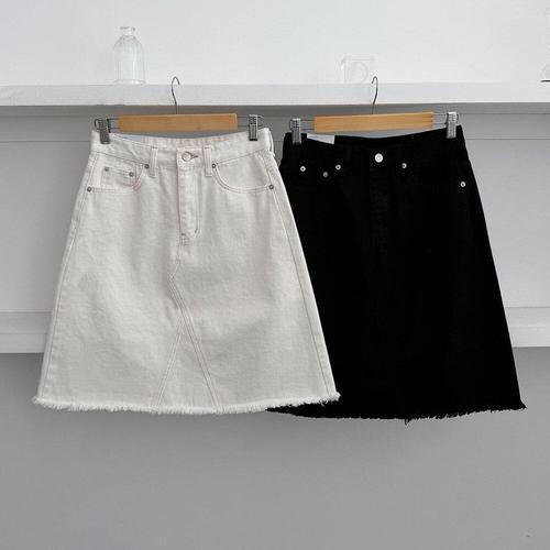 [옷자락]여성 컷팅 A라인 데님 5부 논스판 청치마 미디 스커트