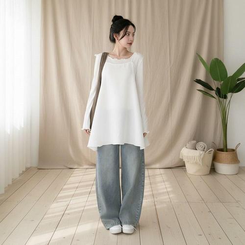 [오너클랜]인기상품 프릴장식 여성용 봄가을 긴팔 스트레치 티셔츠 [WFLLMLX_260305]