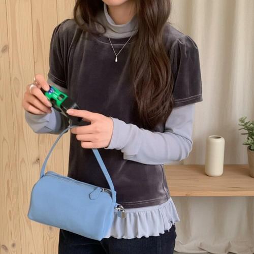 [다잇템]여성 소매 벨루어 프릴 짧은 벌룬 티