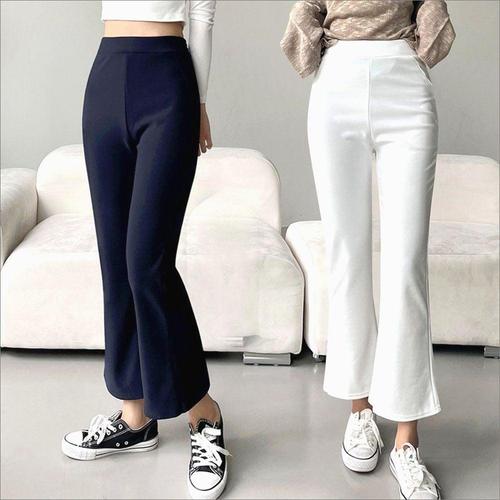 허리밴딩 여자 스판바지 나팔바지 부츠컷 슬랙스 3색 9부 WFKBXLU