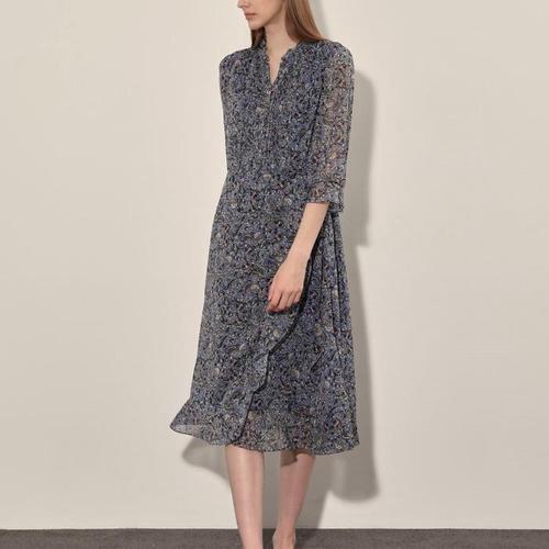 긴팔 원피스 꽃무늬 리본 프릴 플라워 봄 가을 쉬폰 (HSJ-WEE8EA9)