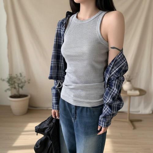 [다잇템][다잇템] 여자 탄탄한 봄여름 내의 데일리 면원단 민무늬 민소매_13128746_588872