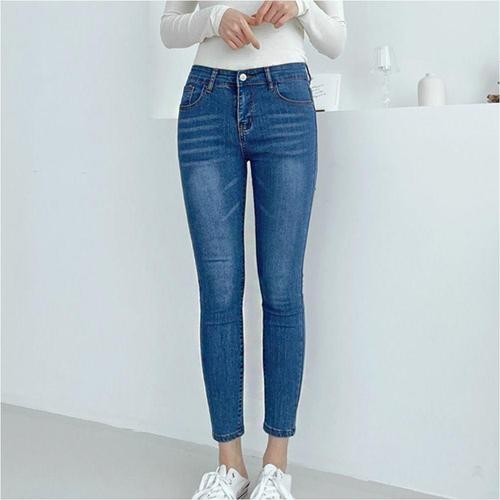 9부 청바지 데님 스키니진 워싱 스판 데일리 여성 팬츠 WFKBXIV