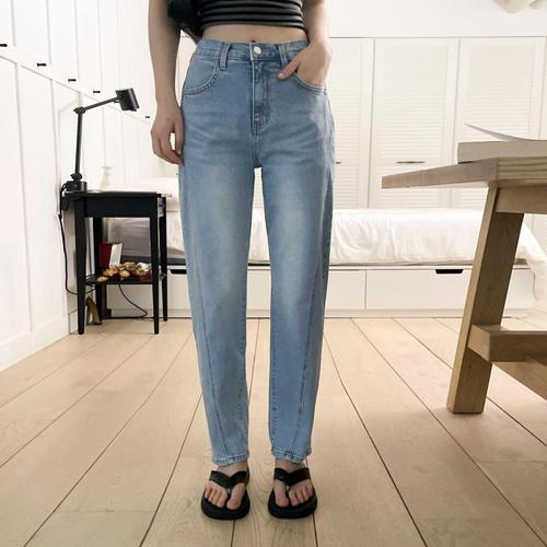 [옷자락] 여자 데일리 편안한 연청 스판 데님 스키니진