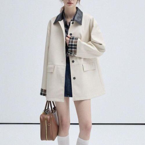[옷자락]여자 오버핏 레더카라 트렌치 루즈핏 봄 자켓