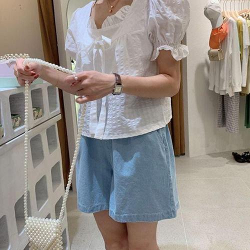 허리밴딩 린넨 면 반바지 시원한 리본 포인트 가볍고 면반바지abc898