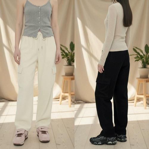 [옷자락]여성용 데일리 와이드 카고팬츠 편안한 일상복