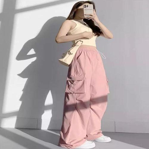 ONM 여자 핑크 와이드 카고팬츠 스트릿 밴딩 트레이닝