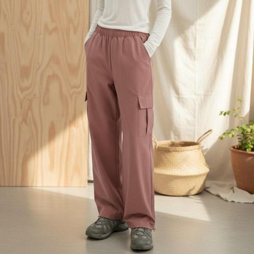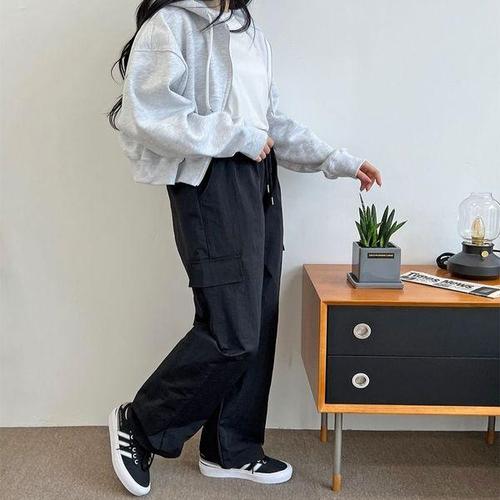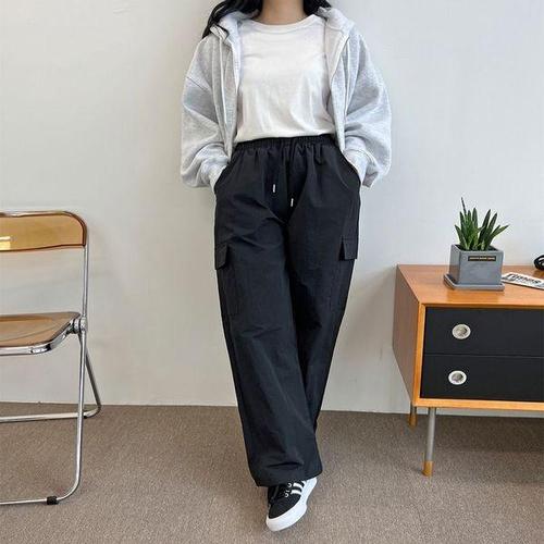 [에이치플러스몰]여성 3컬러 나일론 카고팬츠 와이드팬츠 허리밴딩팬츠