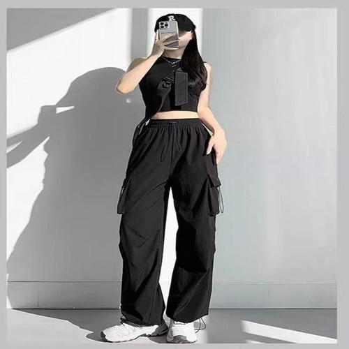 언리얼 투웨이 핏 스트링 카고 팬츠 여성 와이드 밴딩 조거 여름 롱 바지