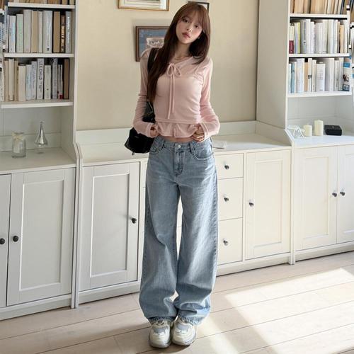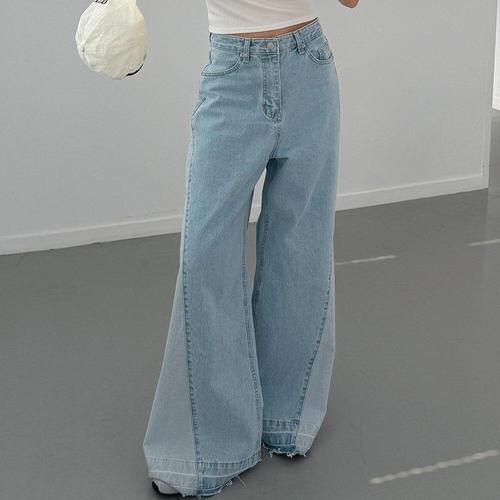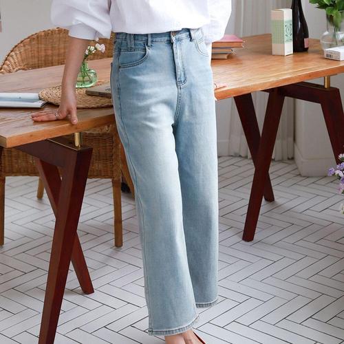 [옷자락]여자 프리미엄 와이드핏 데일리 연청 청바지