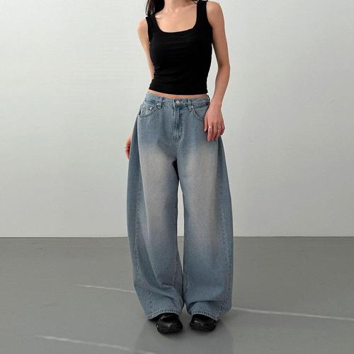 [신상오픈런]여성 벌룬핏 와이드 청바지 옆주름 연청색 맥시 스타일