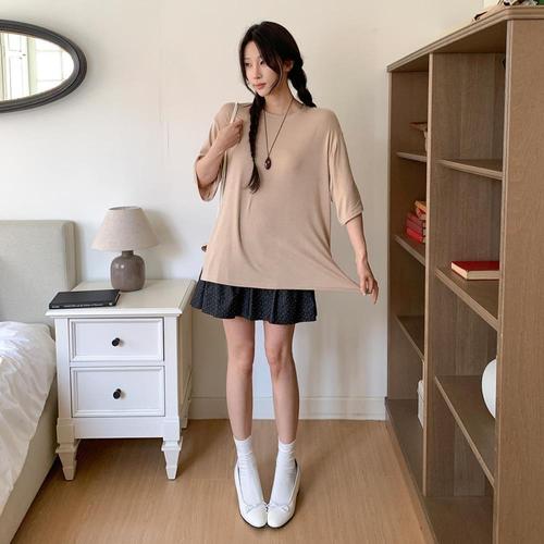 [옷자락]여자 레이온 스판 찰랑 쫀쫀 라운드넥 루즈핏 옆트임 반팔 티셔츠