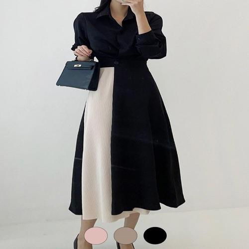 [예쎄][예쎄] 더블벨트SET 배색 플리츠 원피스(S5SOP033A)