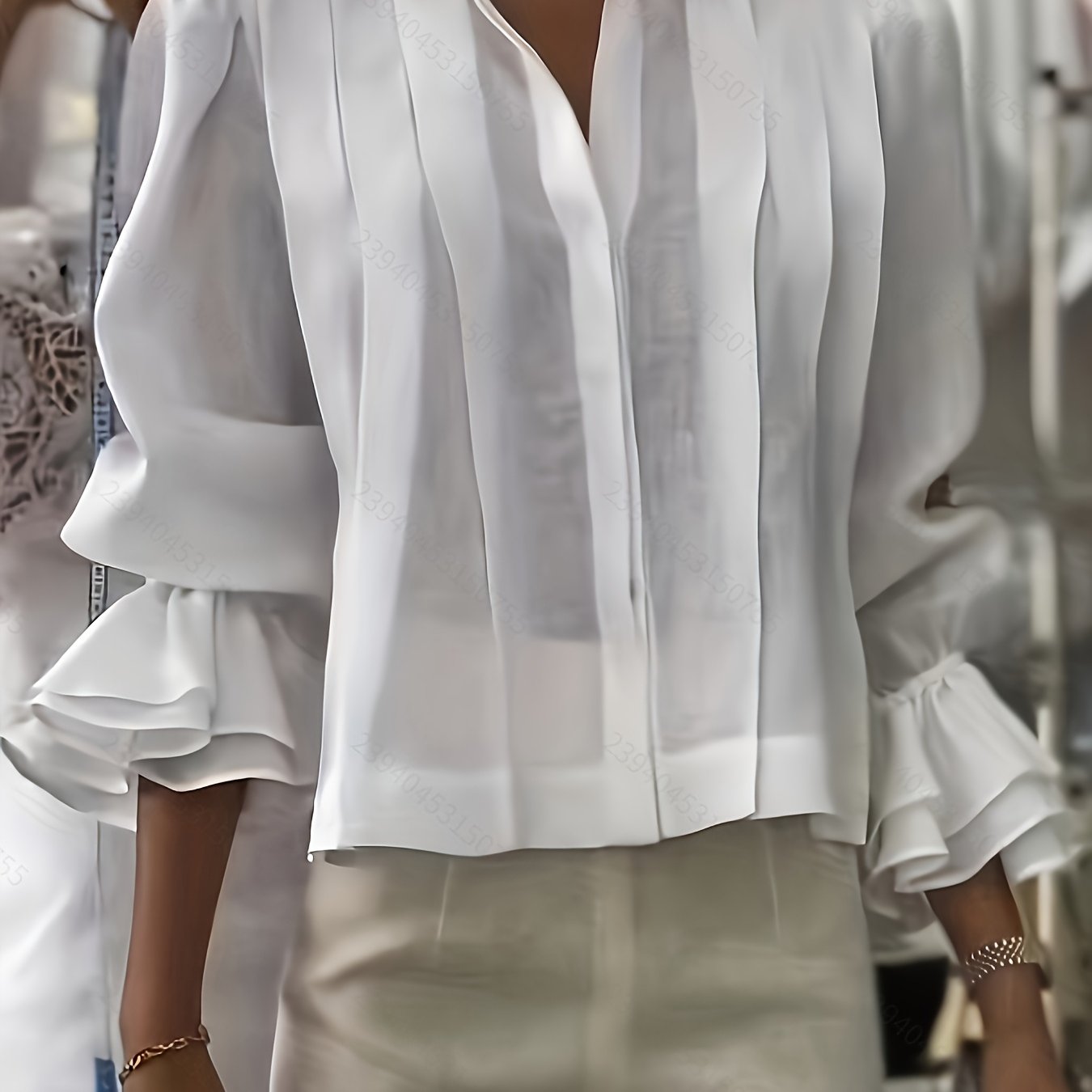 TEMU 유럽 및 미국 패션 스타일 루즈핏 주름 패치워크 플레어 소매 긴팔 셔츠, 가을 의류, 봄 트렌드, 패셔너블한 셔츠