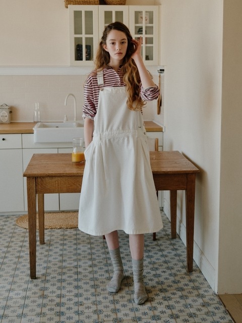 [드파운드] 데님 오버롤 원피스 - 아이보리