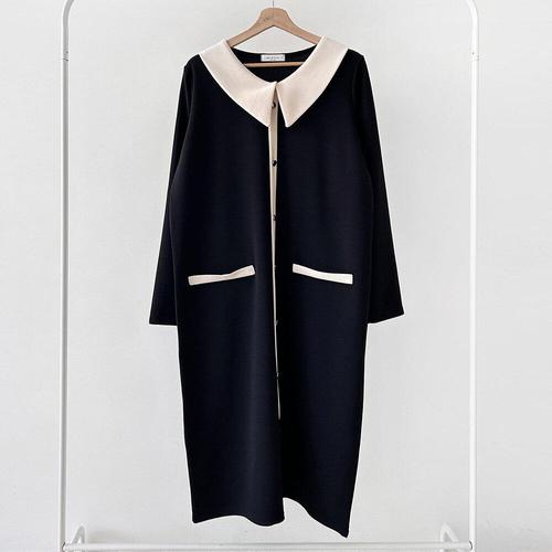 [옷자락]여성 배색 큰카라 버튼 오버사이즈 봄 하객룩 롱드레스