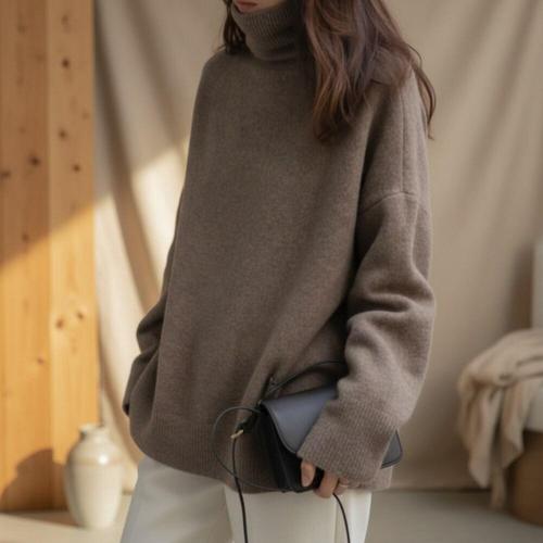[옷자락]여성 따뜻한 루즈핏 오버사이즈 터틀넥 일상 니트 스웨터