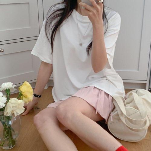 [미라클세븐]여성 루즈핏 무지 반팔 레이어드 티셔츠 라운드넥