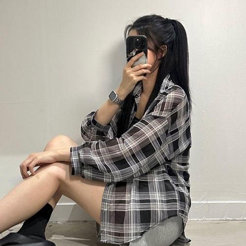 여성 오버핏 시스루 체크 남방 셔츠 3color 레이어드 루즈핏 긴팔 WFJ8NHI