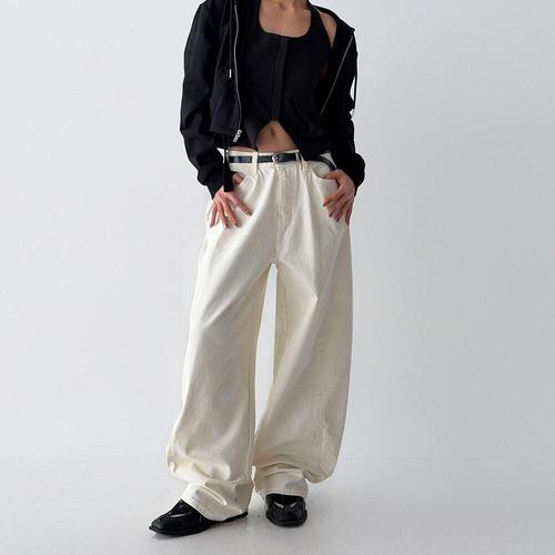 [옷자락] 여자 로우라이즈 커브팬츠 루즈핏 럴룬 와이드 면바지