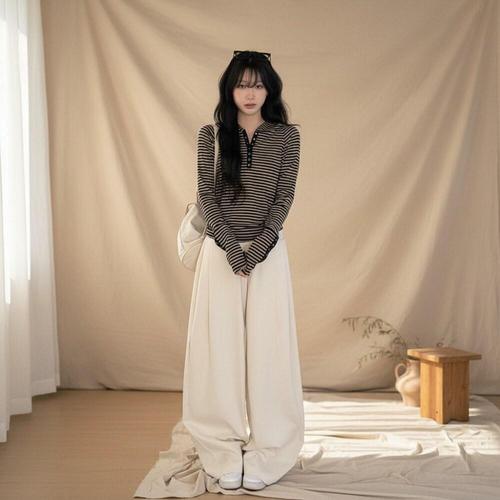 [신상오픈런]여성 루즈핏 여름 와이드 팬츠 크림베이지 면바지