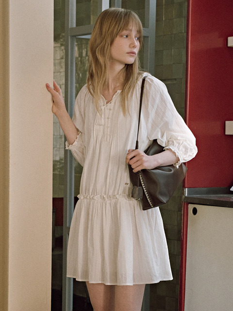 [오스트카카] 핀턱 볼륨 원피스 화이트
