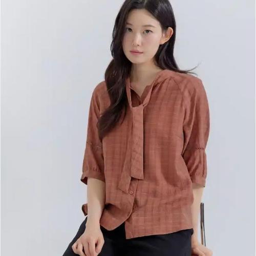 [지센]ZISHEN HC04 여성 체크 타이 블라우스 Lfwsp895 RU (40829008)