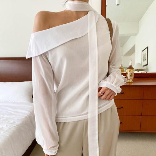 [무슈봉]사선 프릴 언발란스 오프숄더 블라우스