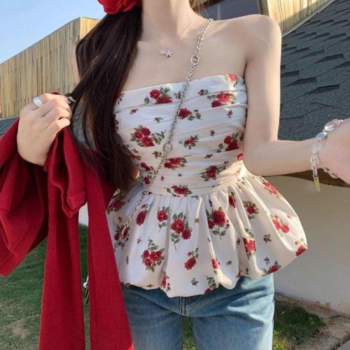 플라워 스모크 민소매 튤립 오프숄더 튜브탑 블라우스 WFKBX0C