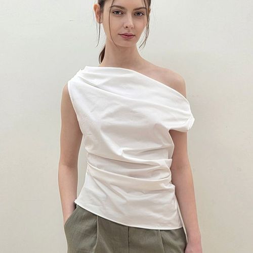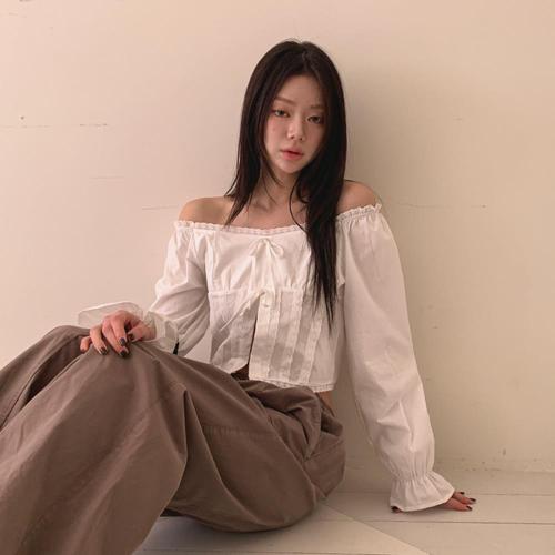 [옷자락]여성 봄여름 코튼 오프숄더 크롭 블라우스