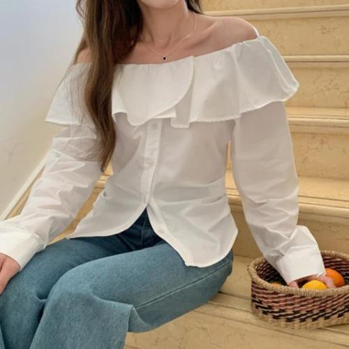 [옷자락]여성 봄 여름 코튼 오프숄더 크롭 셔츠