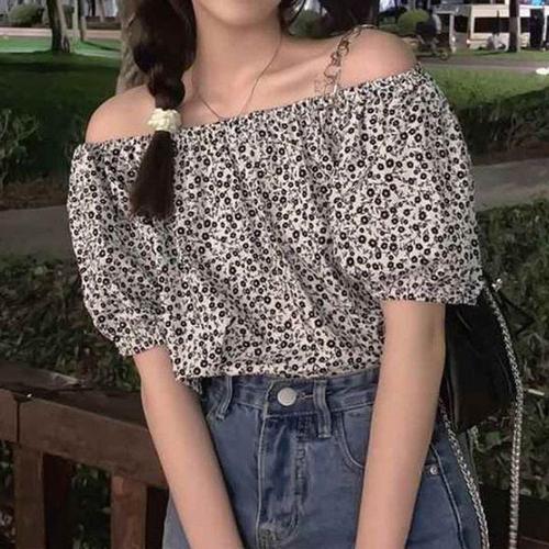 여자 플라워 오프숄더 블라우스 퍼프 반팔 쉬폰탑 (HSJ-WFK80AT)