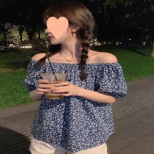 [에이치플러스몰]러블리한 플라워패턴 오프숄더 여름 반팔 블라우스