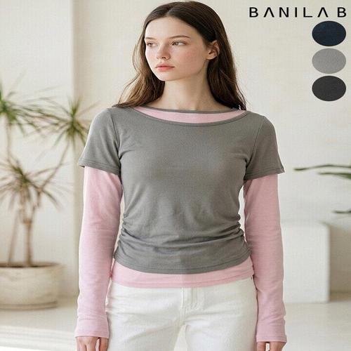 [바닐라비]여성 보트넥 배색 레이어드 티셔츠