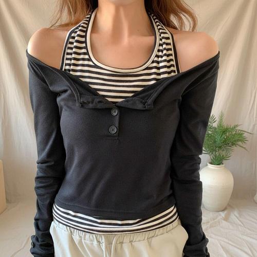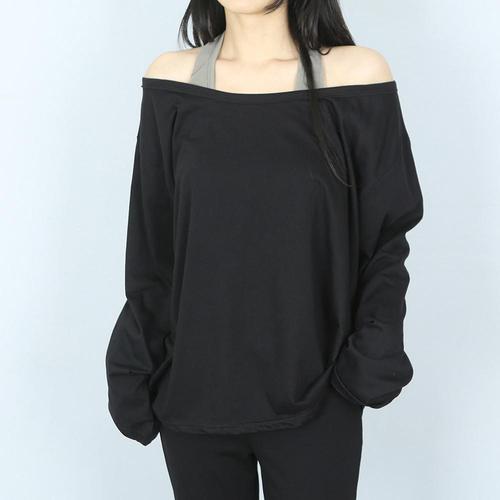 [옷자락]여성 데일리 홀터 오프숄더 긴팔 티셔츠