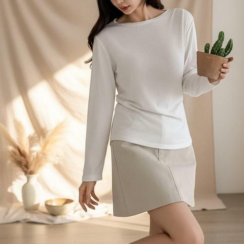 [옷자락]여성 간절기 보트넥 긴팔 이너 티