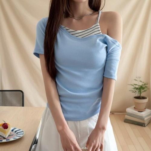[옷자락]여성 여리핏 오프숄더 이중레이어 데일리 봄 상의
