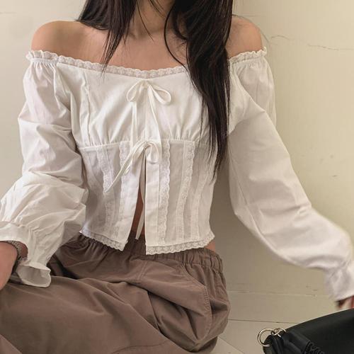 [옷자락]여성 봄여름 코튼 오프숄더 크롭 블라우스