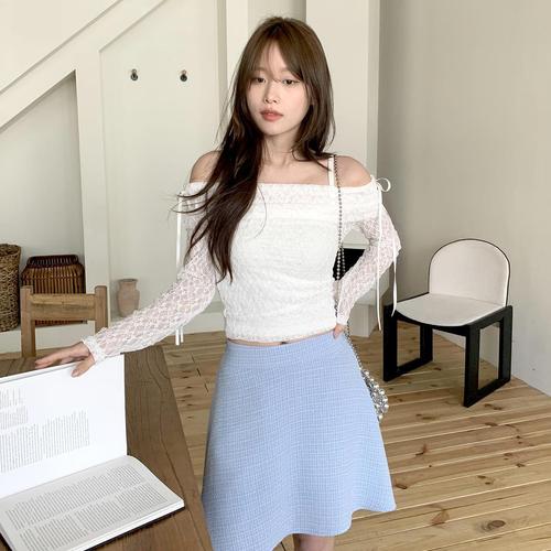 [옷자락]여자 데이트룩 여리여리 초커끈 오프숄더 니트