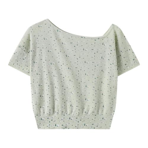 [미니멈에브리데이][미니멈 에브리데이]믹스 패턴 언발 오프숄더 반팔 니트 (EC2KT016D)