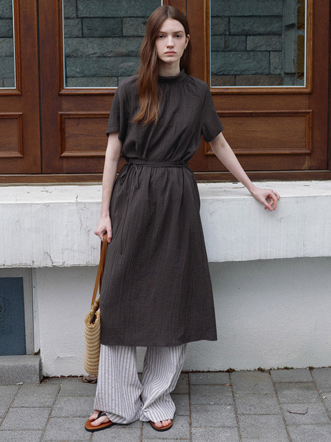 [애비뉴투지]엄마옷 윙카라 히든지퍼 칠부 소매 리본 여성 봄 여름 롱 원피스 K04312 50대 60대 중년여성