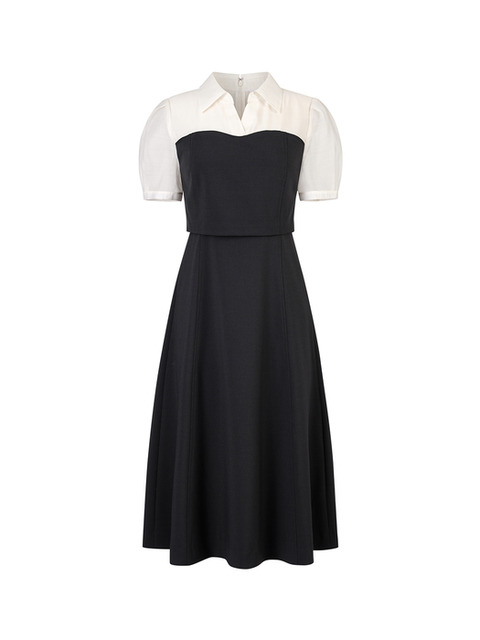 [올리브데올리브]셔츠 배색 오픈 숄더 핏앤 플레어 원피스 (OW4WO978)